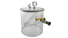 Our 8″ DIA x 12″ H clear acrylic vacuum chamber features a top-loading design and a full view of your testing application. This chamber can achieve vacuum performance down to 0.1 Torr with the appropriate vacuum pump.