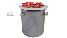 The 10″ DIA x 12″ H Cylindrical Leak Detector Vacuum Chamber is designed for mounting directly onto the inlet of a helium leak detector. Built from stainless steel, it provides a durable and compact solution for component leak testing. The chamber features a hinged lid for easy loading and a Buna L-gasket to maintain vacuum integrity.