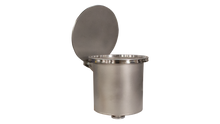 The 10″ DIA x 12″ H Cylindrical Leak Detector Vacuum Chamber is designed for mounting directly onto the inlet of a helium leak detector. Built from stainless steel, it provides a durable and compact solution for component leak testing. The chamber features a hinged lid for easy loading and a Buna L-gasket to maintain vacuum integrity.