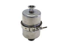 An 8″ stainless steel high vacuum trap with NW50 flange connections set at a right angle configuration. Includes four filter elements (see element choices below). Traps also come in a straight through design. Also available with hose terminations.