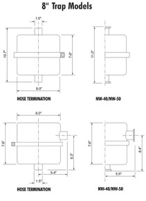 9.5″ Transparent Sump Trap with various filter insert and fitting options. These traps are used to contain high volumes of solids and particulates. 3/4″ Female Pipe Thread Terminations. Recommended up to 15 cfm.